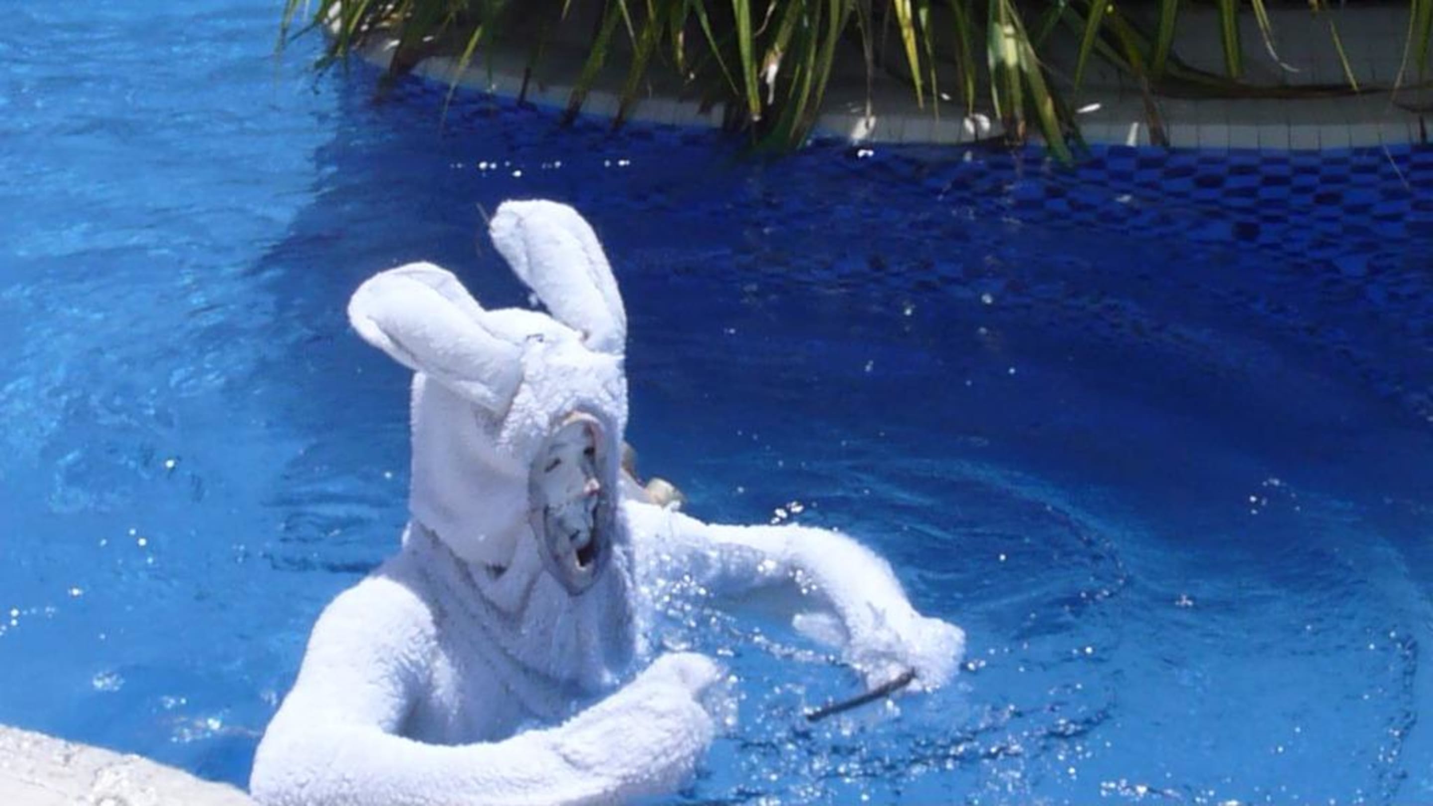Das "Duracell-Häschen"es läuft den ganzen Tag durch die Anlage, über Liegen, gegen Schirme, durch den Pool usw.