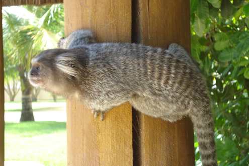 Löwenkopfäffchen am Sonnenschirm
