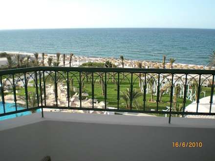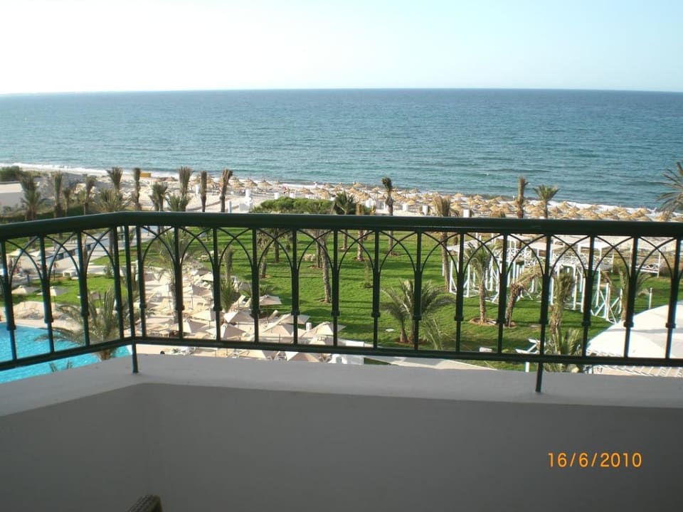 Meerblick vom ZimmerbalkonAusblick auf Pool, Strand und Meer vom Balkon unseres Zimmers (4. Etage)