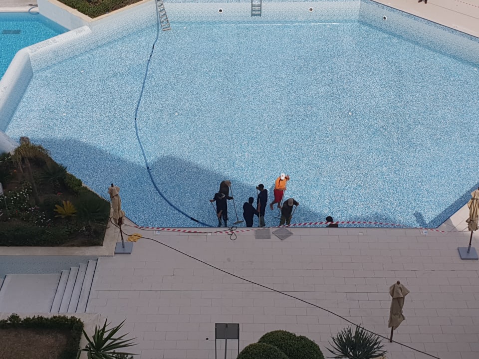 der Pool wird für die neue Saison komplett gereinigt