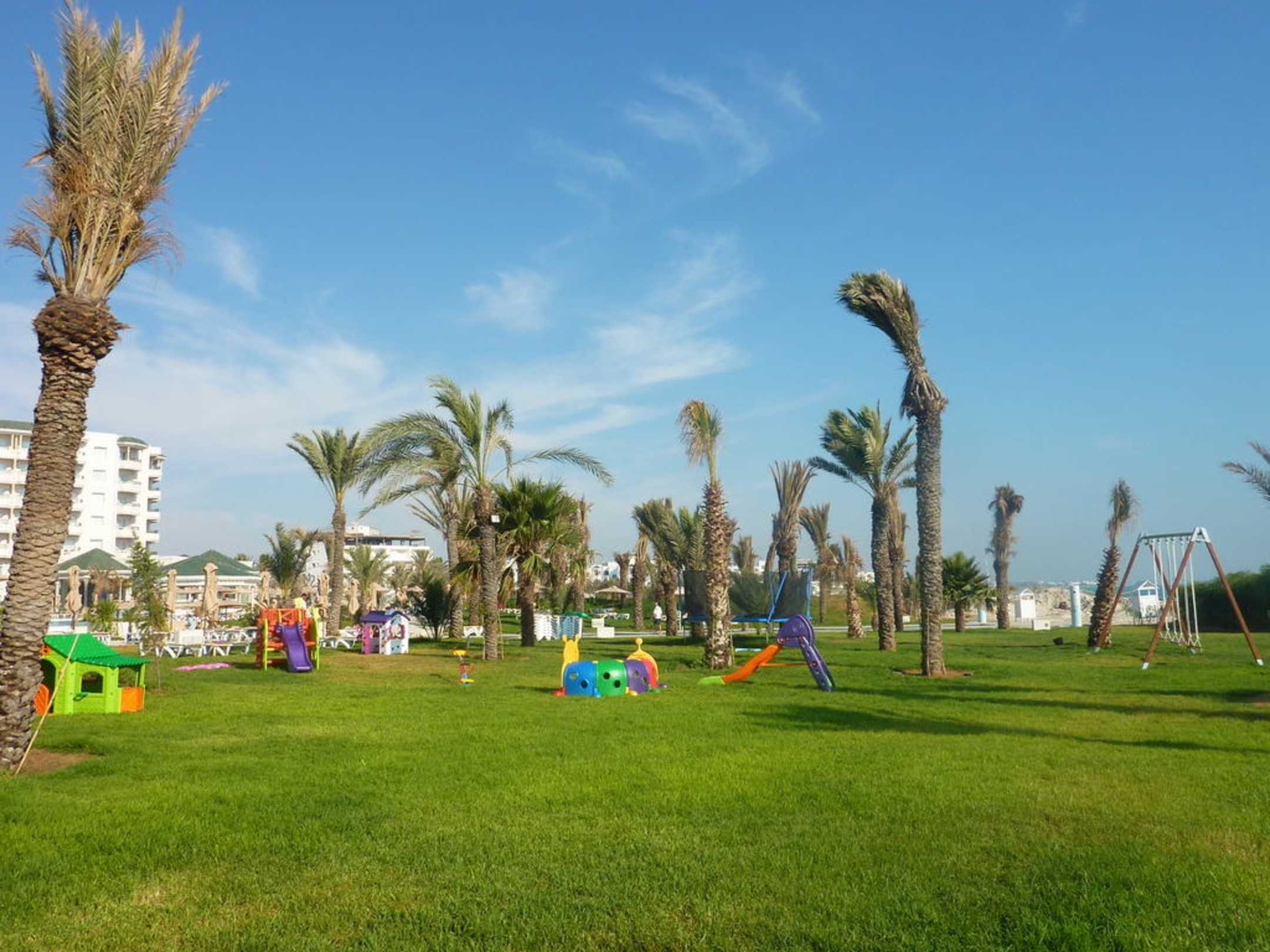 Gartenanlage mit Spielplatz im Hintergrund