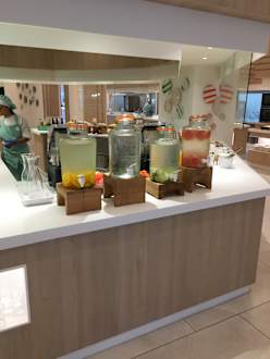 Das tägliche Frühstücksbüffet auf 18 Bidern erfasst.