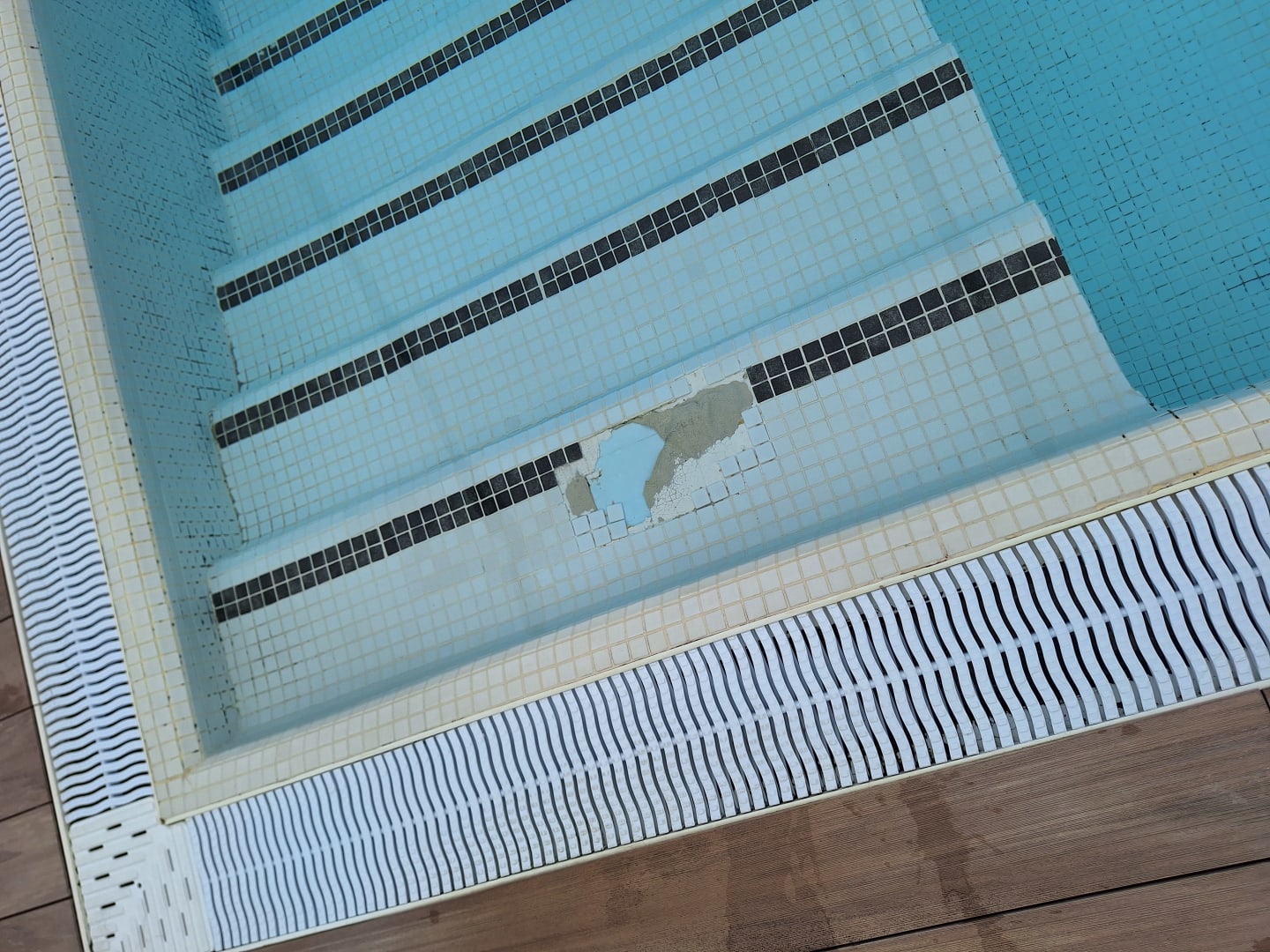 Defekte und lose Fliesen am Einstieg