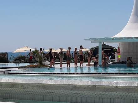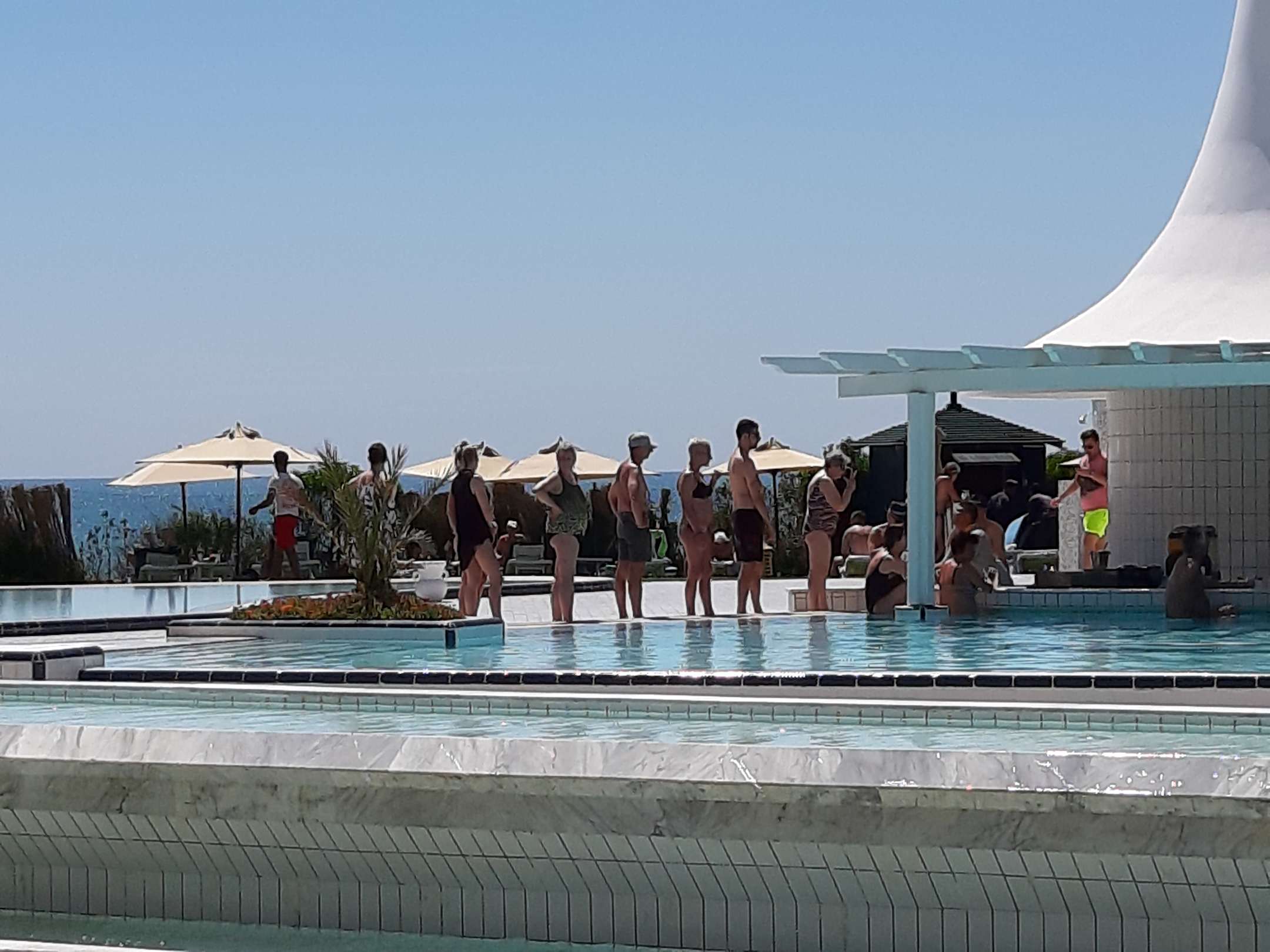 PoolLanges Warten an der Poolbar auf Getränke und das in der Hitze.Peinlich