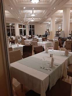 Gastroschöne gedeckte Tische für das Abendessen - aber zu dicht gestellte Tische