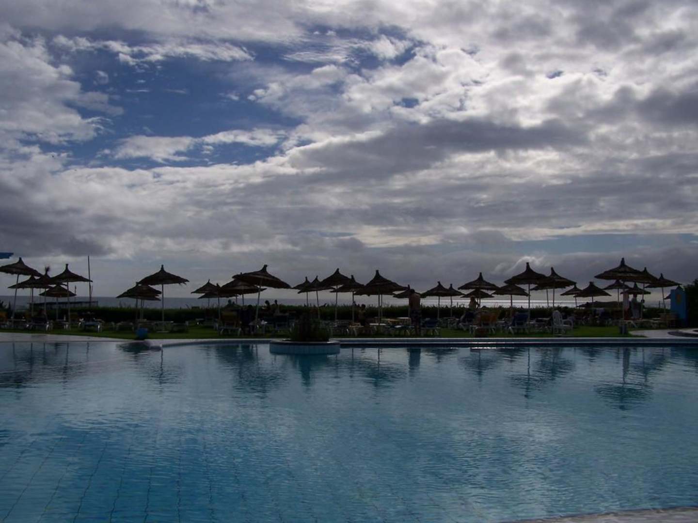 Blick über Pool zum Strand