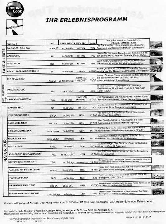 Ausflugsprogramm von Neckermann und Thomas CookDamit man mal sieht, welche Ausflüge so unternommen werden können und was sie kosten.