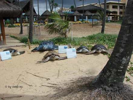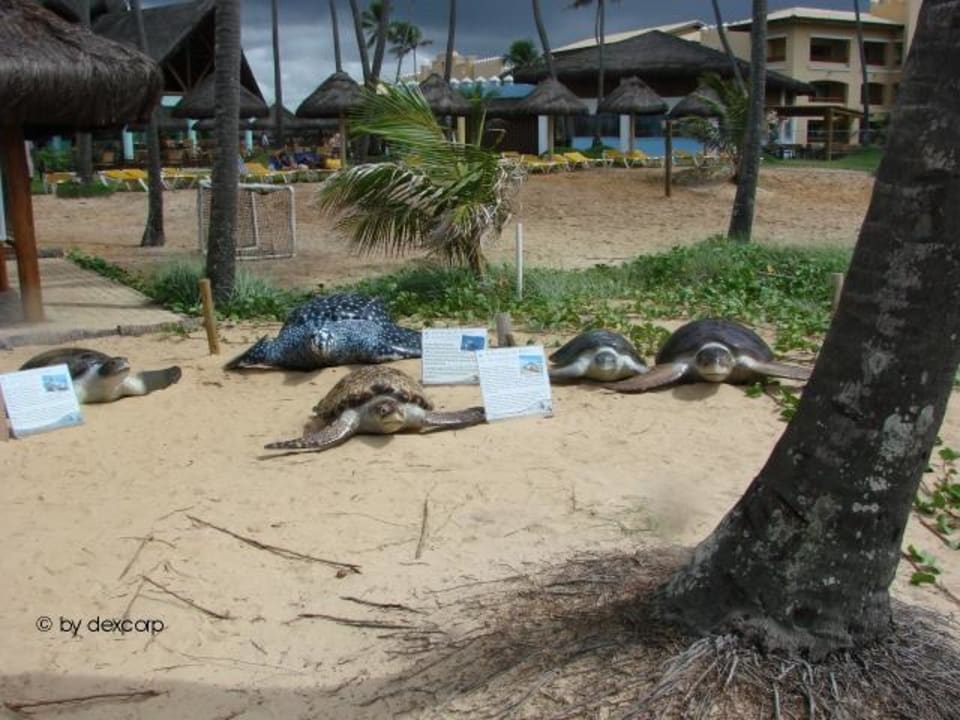 Im Hotel gibt es am Strand einen Stand vom Projet Tamar. Dort sind unter anderem die fünf Wasserschildkröten nachgebildet, die am Strand von Brasilien ihre Eier legen.