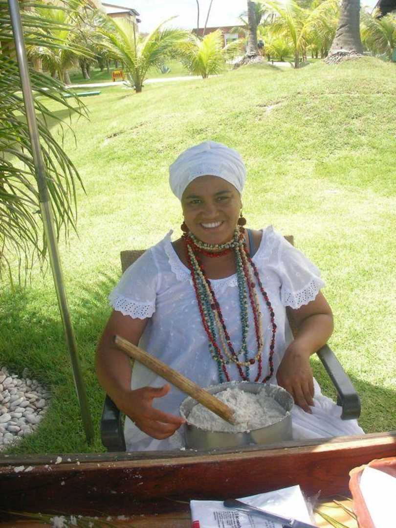 Brasilianerin beim BackenDiese Brasilianerin hat fast jeden Tag bei uns in der Gartenanlage Teigbällchen gebacken, die dann gefüllt wurden.