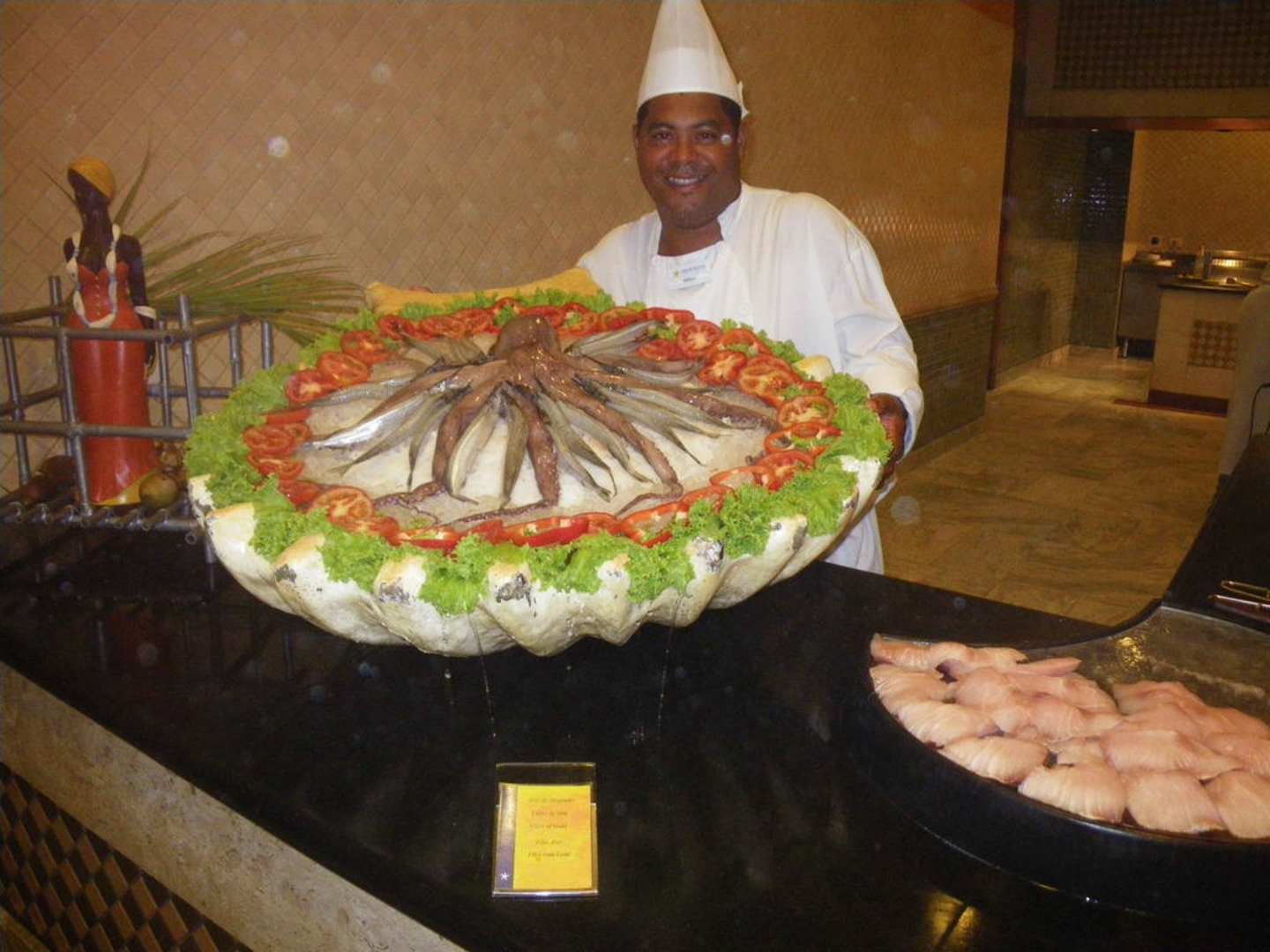 Leckerer TintenfischNein, das ist nicht "Filet von Gold" wie es hier auf dem Schild in deutscher Sprache steht.