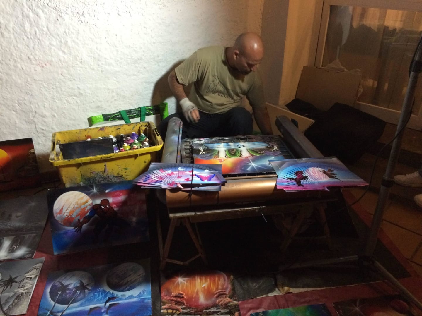 Der beste Künstler "Salvador" am Abend.Hier sieht man den Künstler und Sprayer Salvador, welcher jeden Dienstag und Samstag Abend auf der Dachterrasse an der Salon-Bar wunderschöne und absolut bezahlbare Bilder sprüht. Vielen Dank für Deine tollen Bilder. Sie hängen bei uns in Ehren.