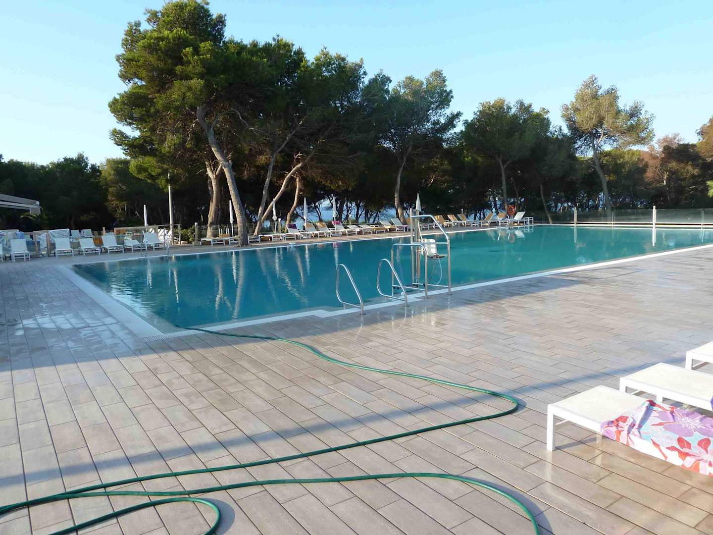 Der neue (kleinere Pool)Aufnahme um 7.30 Uhr. Der Pool ist ganztägig unbeschattet.