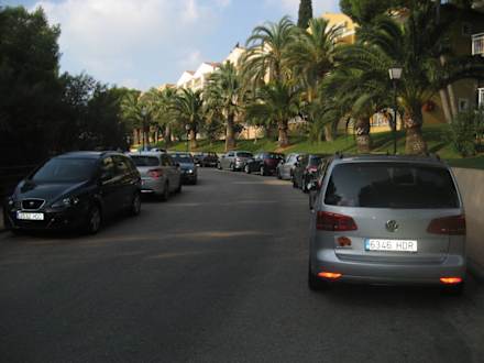 Straße zwischen Zimmern und StrandZugeparkte Straße die von den Gästen überquert werden muss