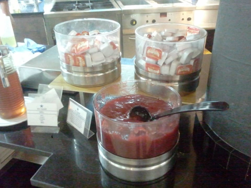 Frühstück 2 Sorten Marmelade: 1x abgepackt Orange - 1x offen Erdbeer. ( 4 Sterne Iberostar ??? )