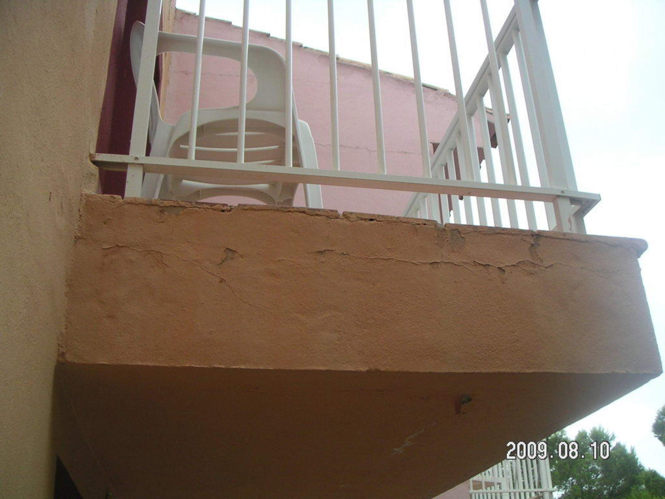 Aussicht zum darüberliegenden BalkonAblösung des Verputzes und der Farbe!!