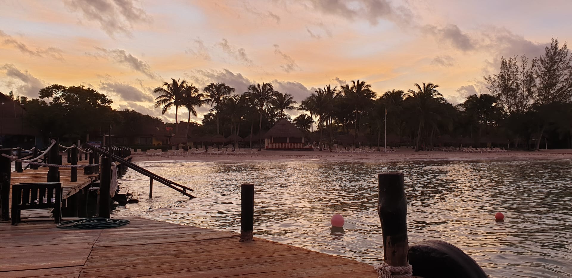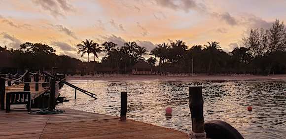 Morgendlicher Blick vom Steg auf den Strand