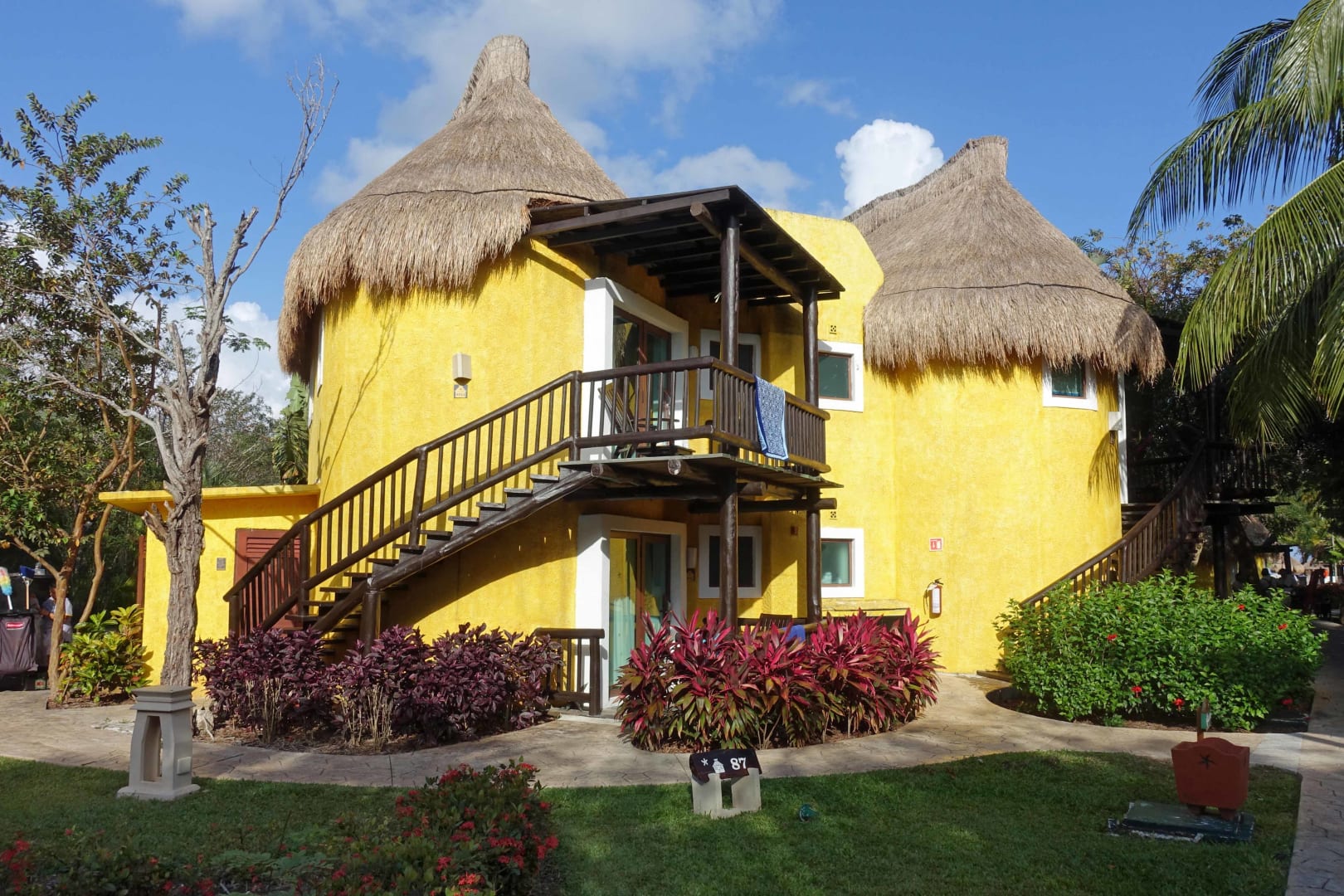 Wohnbeispiel: Die ganze Hotelanlage besteht aus solchen strohgedeckten Häuschen mit jeweils 8 Zimmern - alle harmonisch eingebettet in die Gartenanlage.