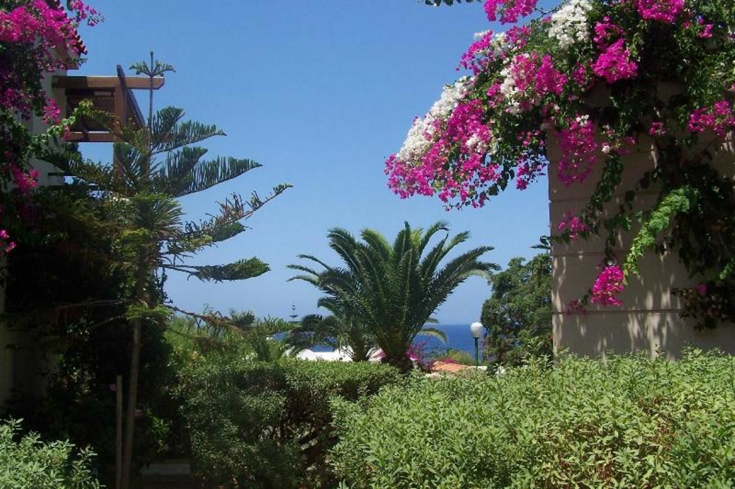 NebenhäuschenLinks und rechts die Unterkünfte in kleine Häuschen, saftig grün und schattig bei 35 °C