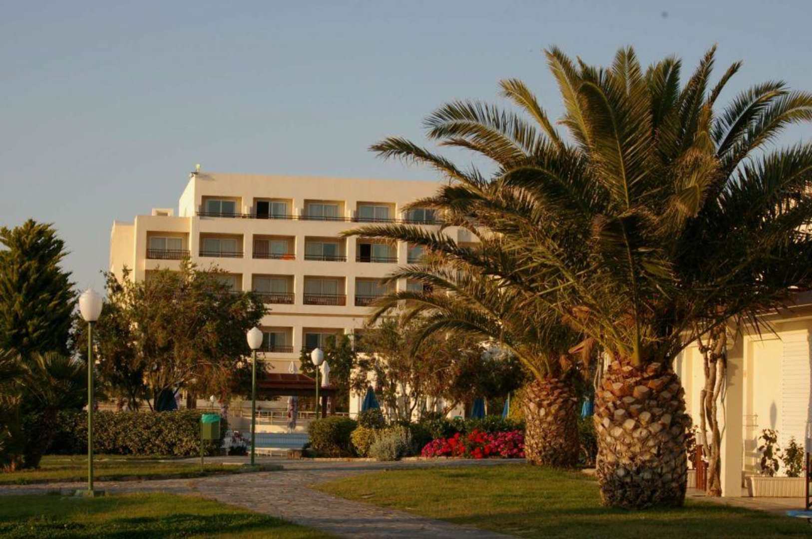 Widok na hotel od strony basenu głównego