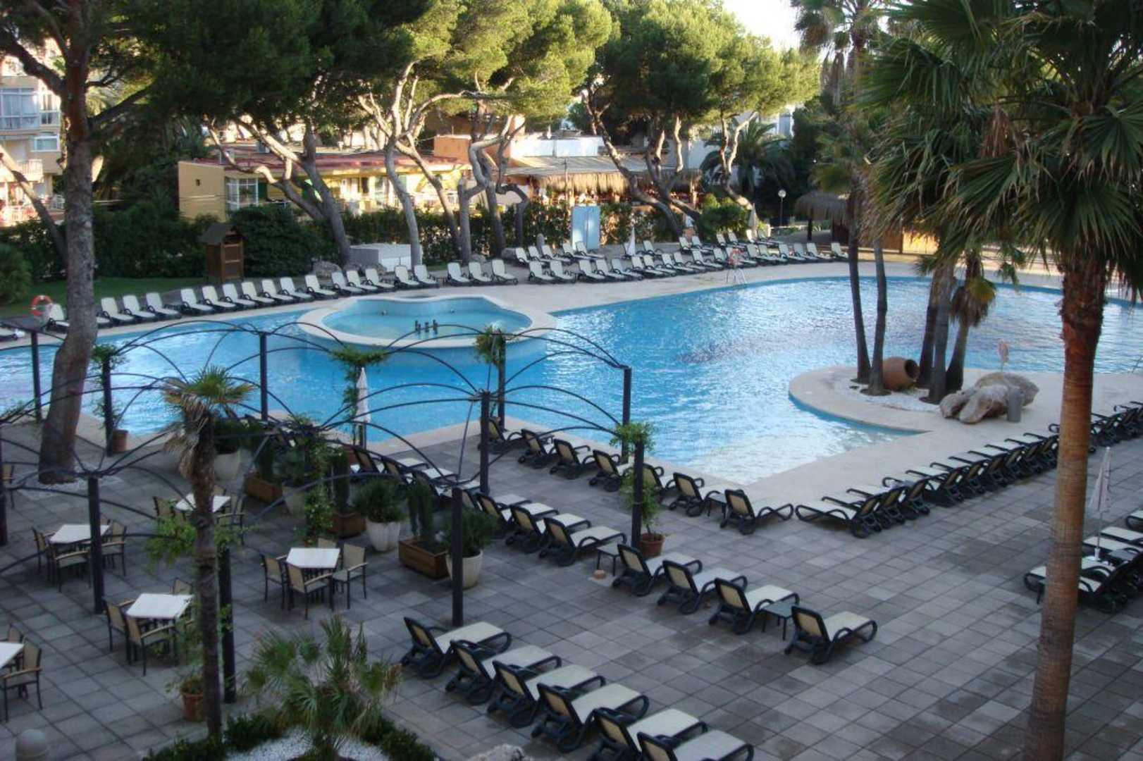 Die Poolanlage vom Balkon aus