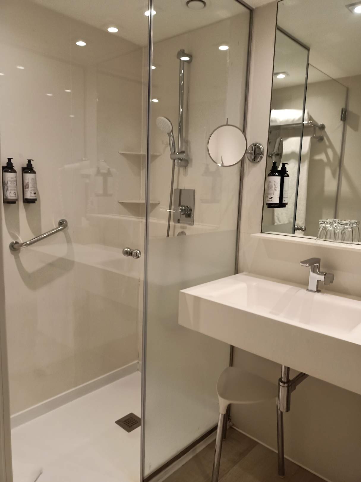 Badezimmer mit ebenerdiger Dusche.