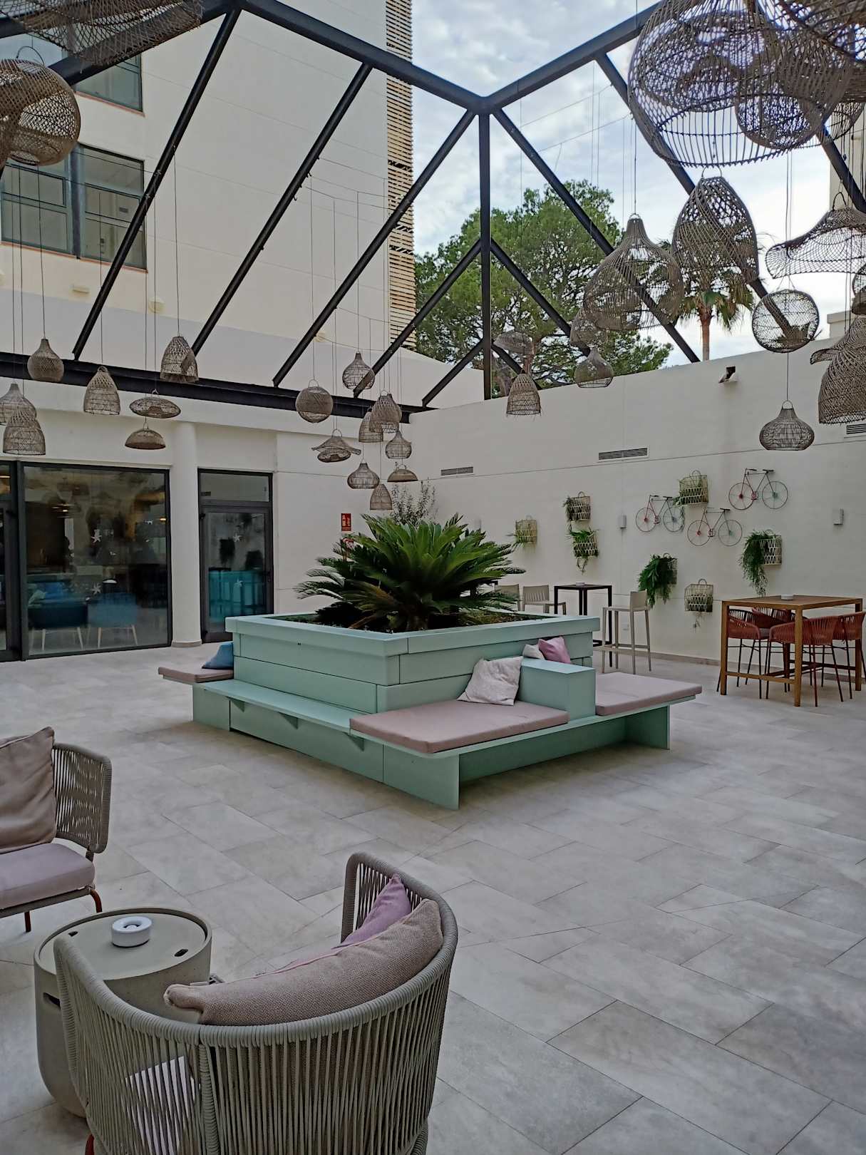 Raucherbereich zwischen den beiden Gebäudeteilen