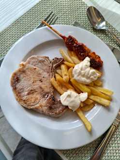 Zu Mittag tolles Kotelett mit Spieß