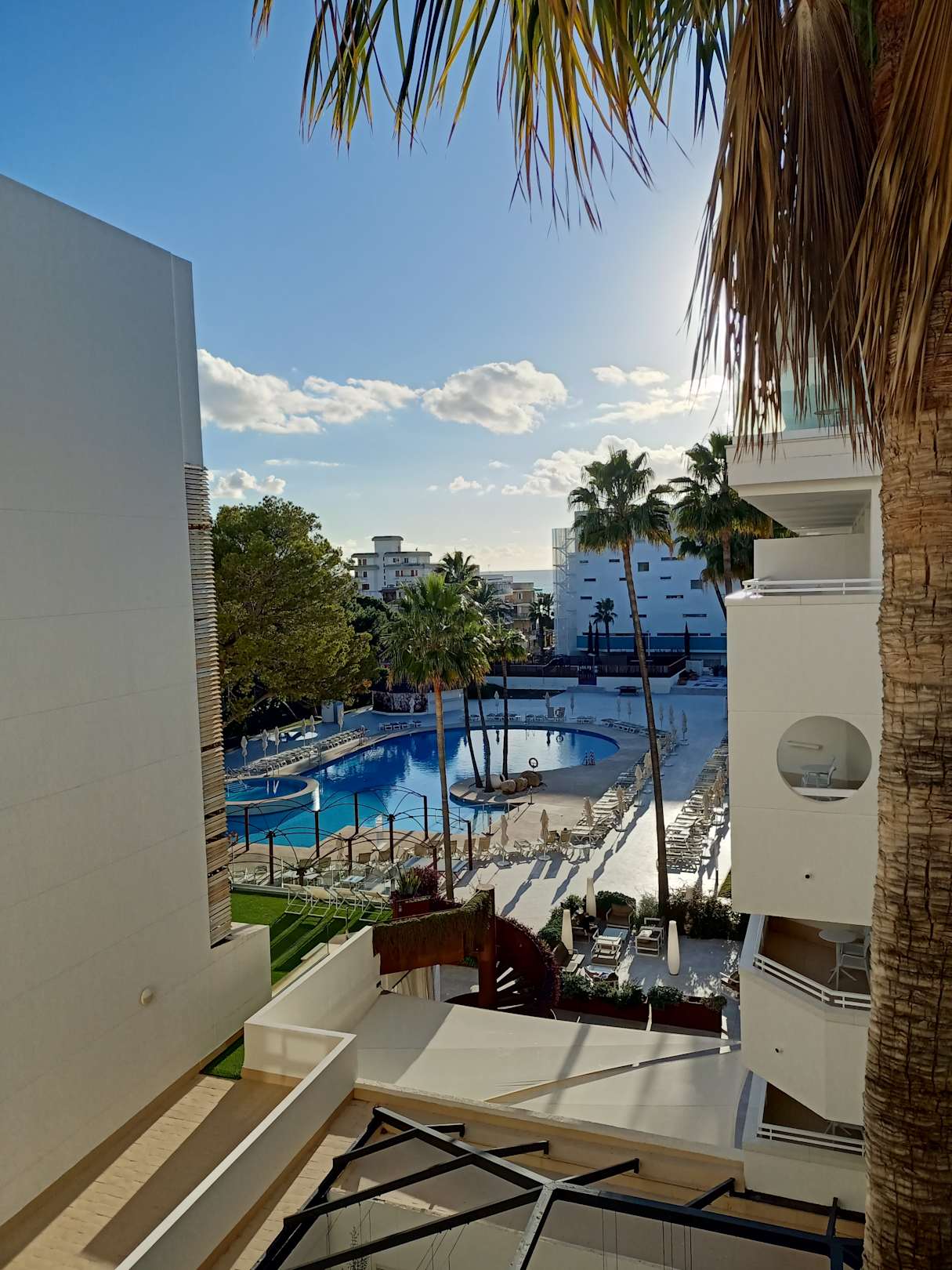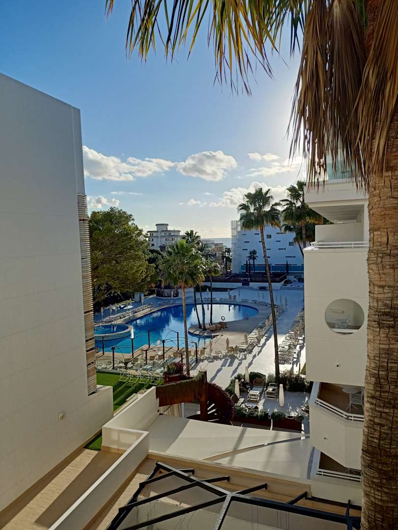 Ausblick auf den Poolbereich vom Übergang im 4. Stock