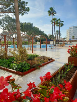 Ausblick aus unserem "outdoor livingroom" am Pool.
