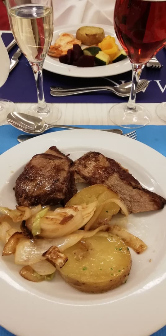 Steak mit Zwiebeln und Knoblauch-Patatas