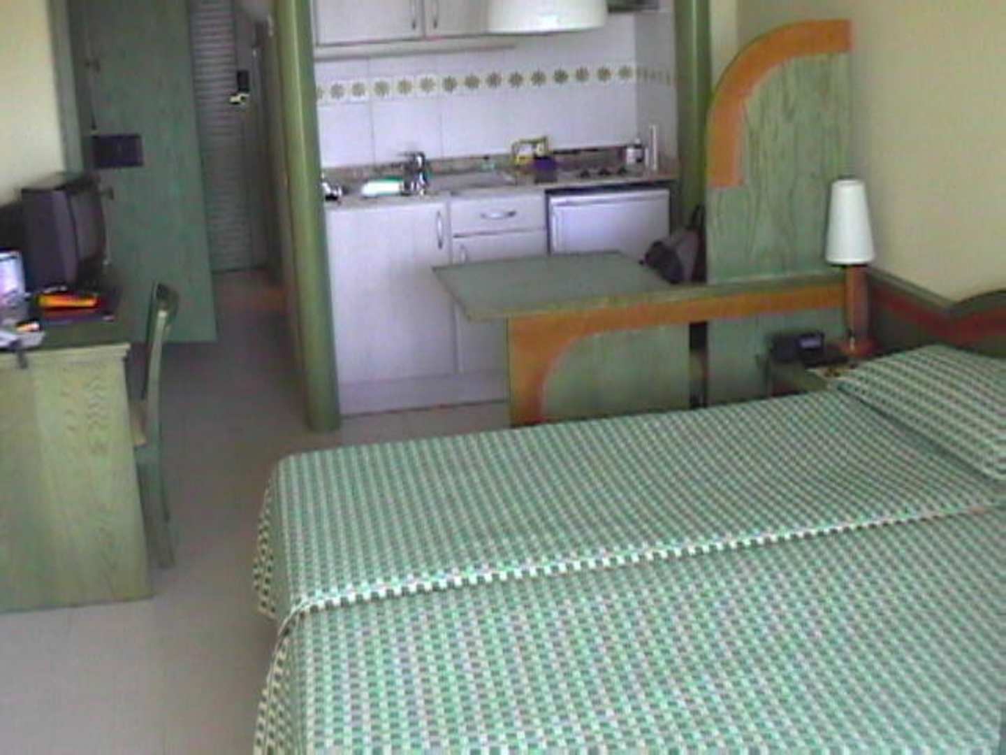 Zimmer mit kleiner Küchenzeile und Esstisch