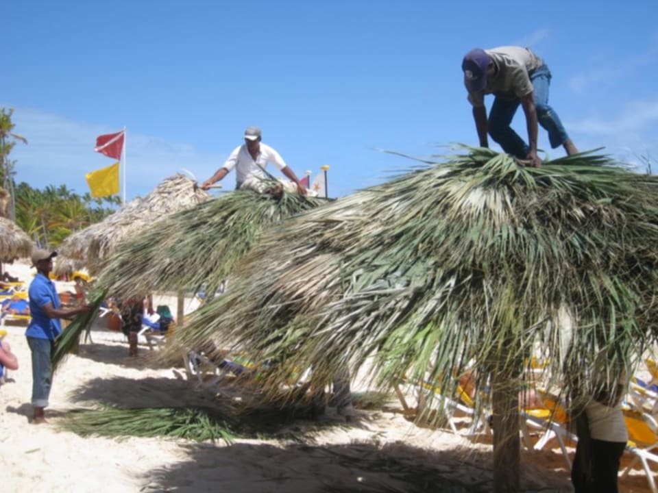 DachdeckerDie Sonnenschirme wurden mit frischen Palmenzweigen erneuert