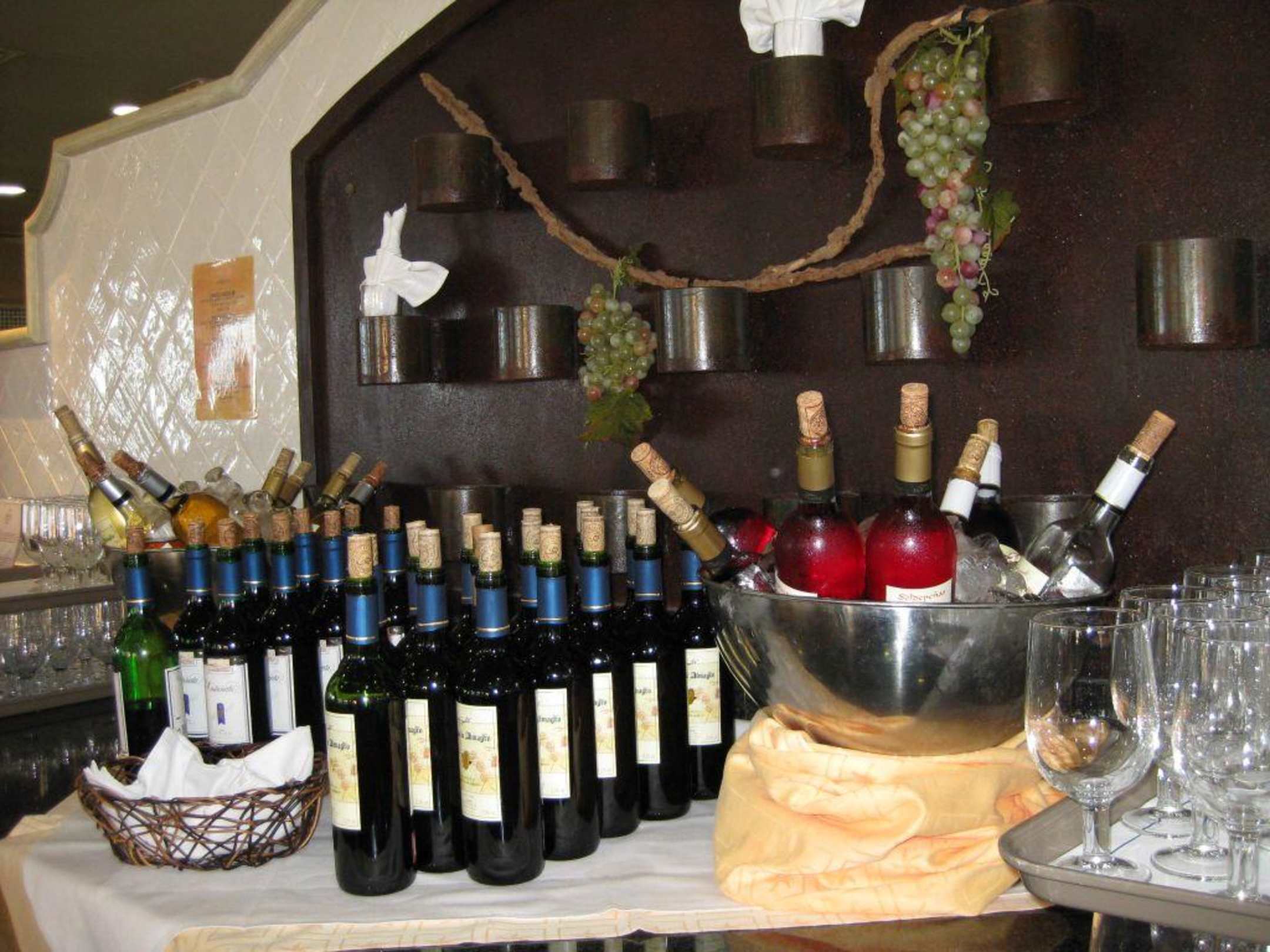 WeinbuffetMind. vier Sorten Wein konnte man sich selbst einschenken (Halbpensionsgäste: 3 € Zuzahlung pro Person)