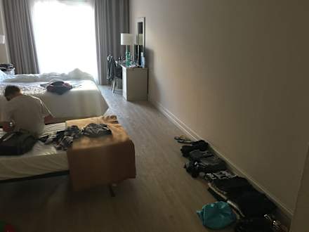 ZimmerNull Ablagemöglichkeiten, weil am Schrank gespart wurde und Sachen auf den Boden gelegt werden mußten.