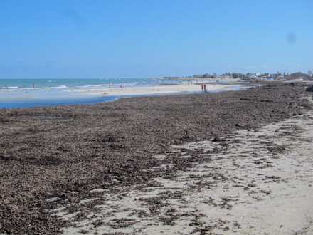 StrandDer Strand am Abreisetag nach 4 Tagen schlechtem Wetter, Berge von Seetank