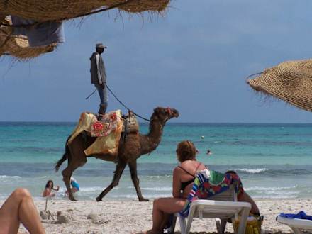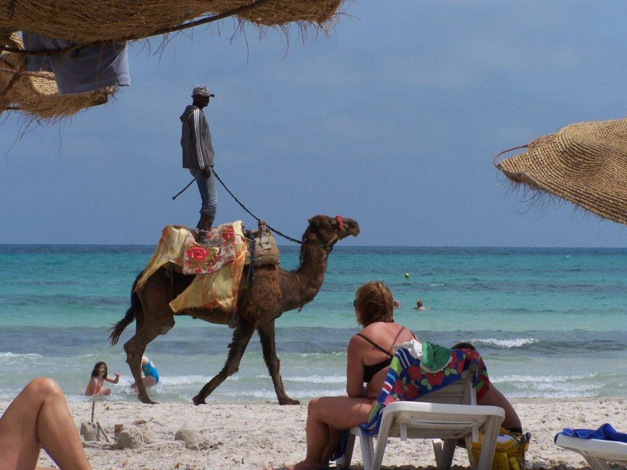 velbloud na pláži - majitelé se rádi předvádějí