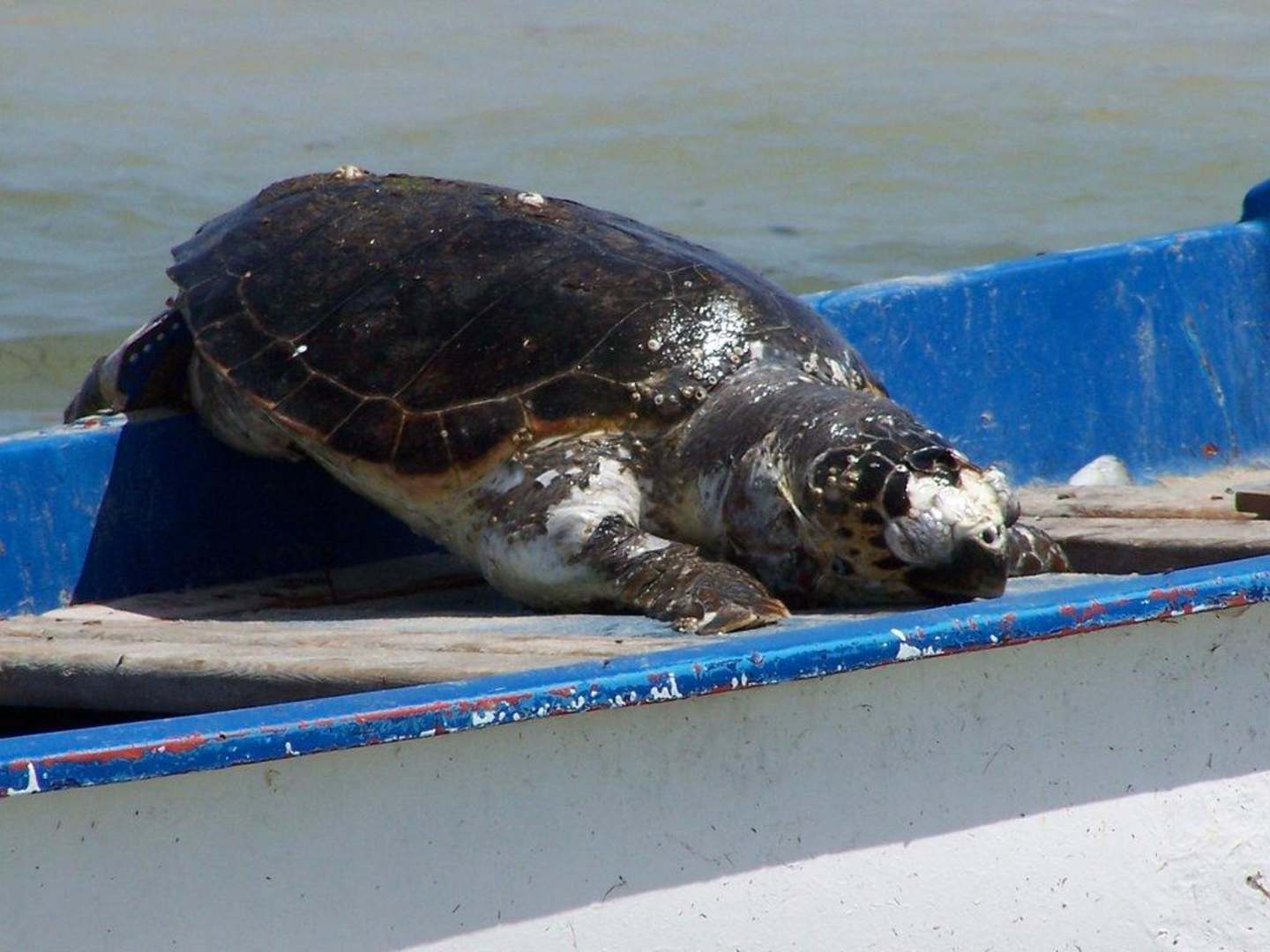 vyvržená želva na břeh - vezou ji zpět do moře