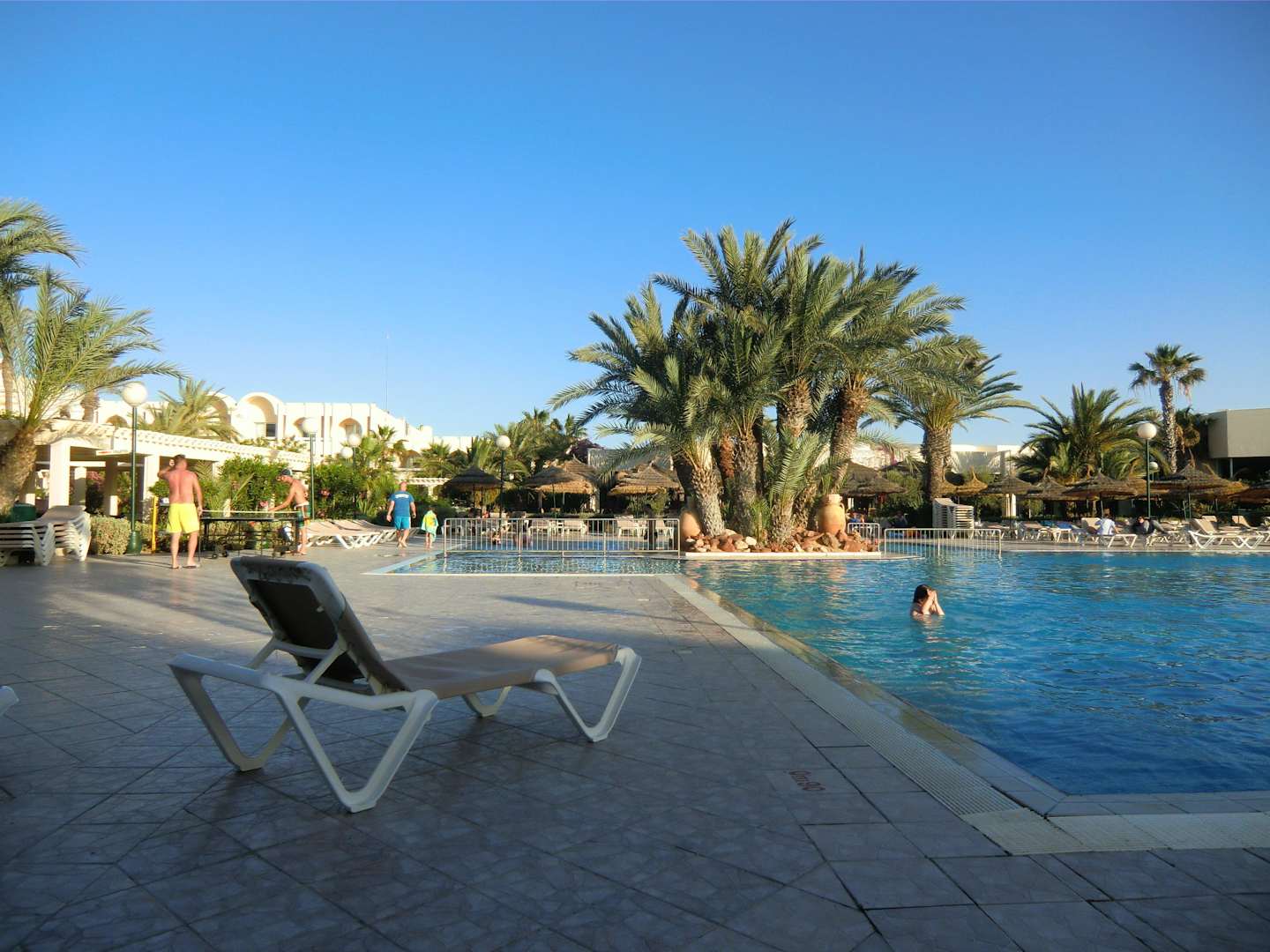 Poolbereich am Abend