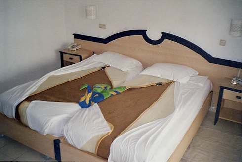 Bett/Zimmer vom RIU Mehari DjerbaBettgestaltung durch Zimmermädchen