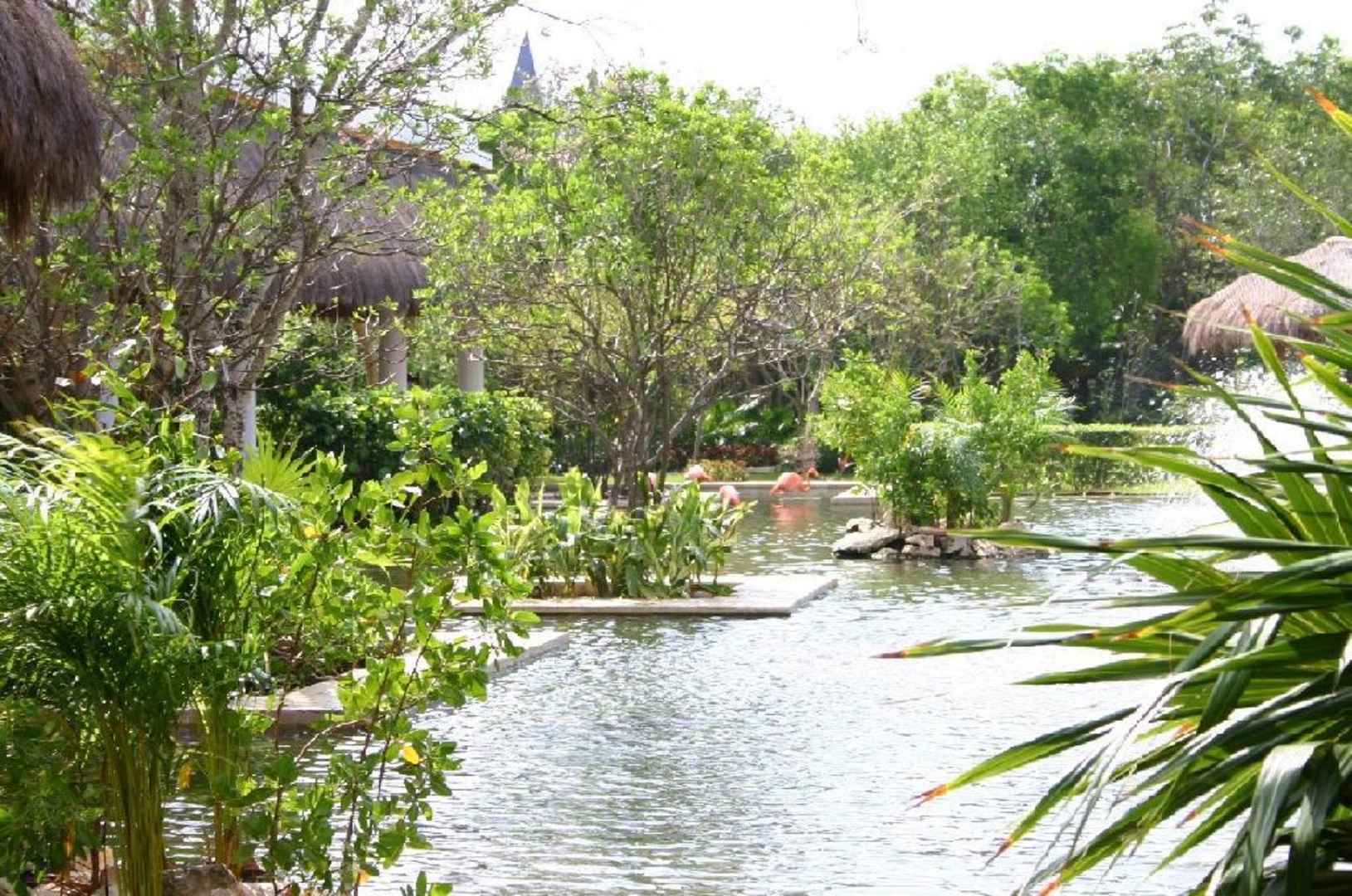 An der Lobby Iberostar ParaisoAuch Flamingos gibt es dort; ständig werden auch die Teichanlagen mitsamt ihren Bewohnern gepflegt.