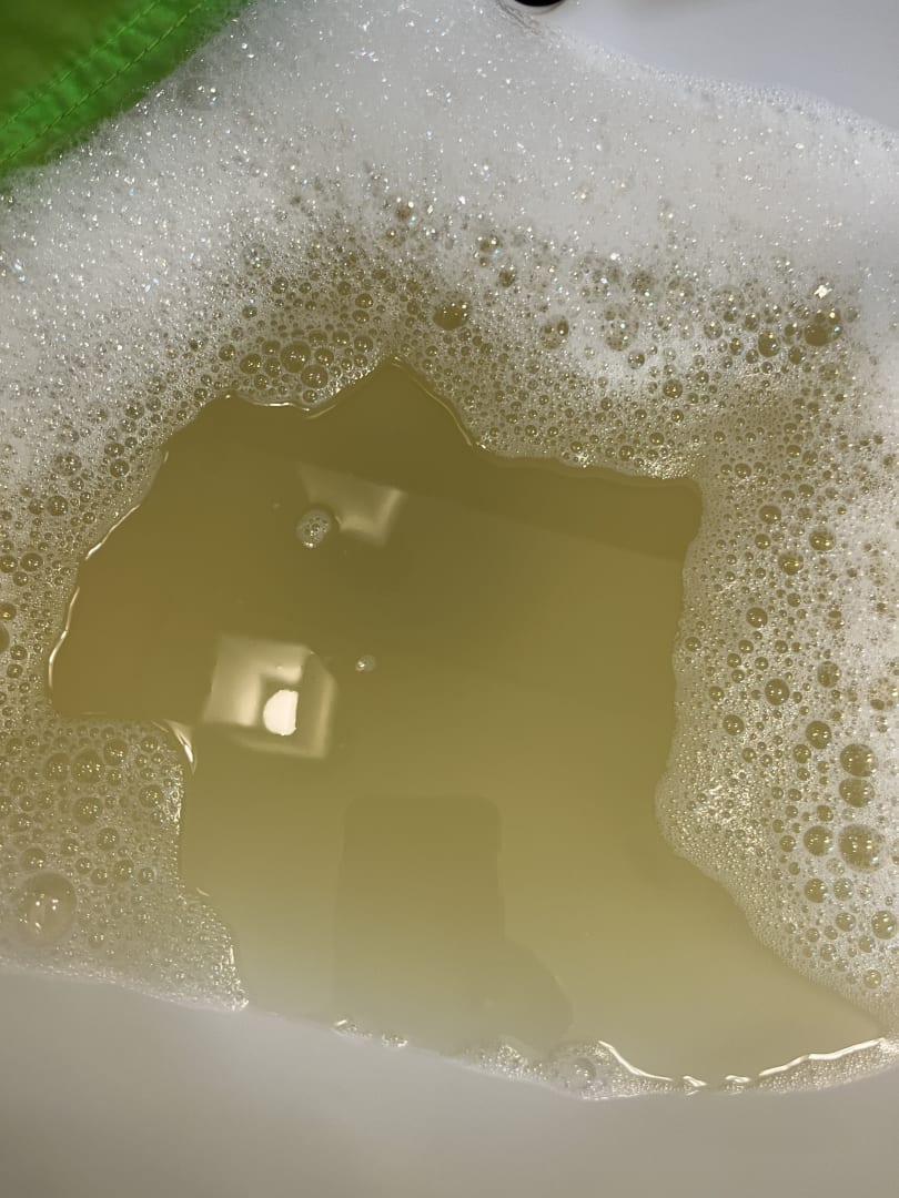 SonstigesWasser nach dem Auswaschen der Badebekleidung. Verfärbung durch Pool