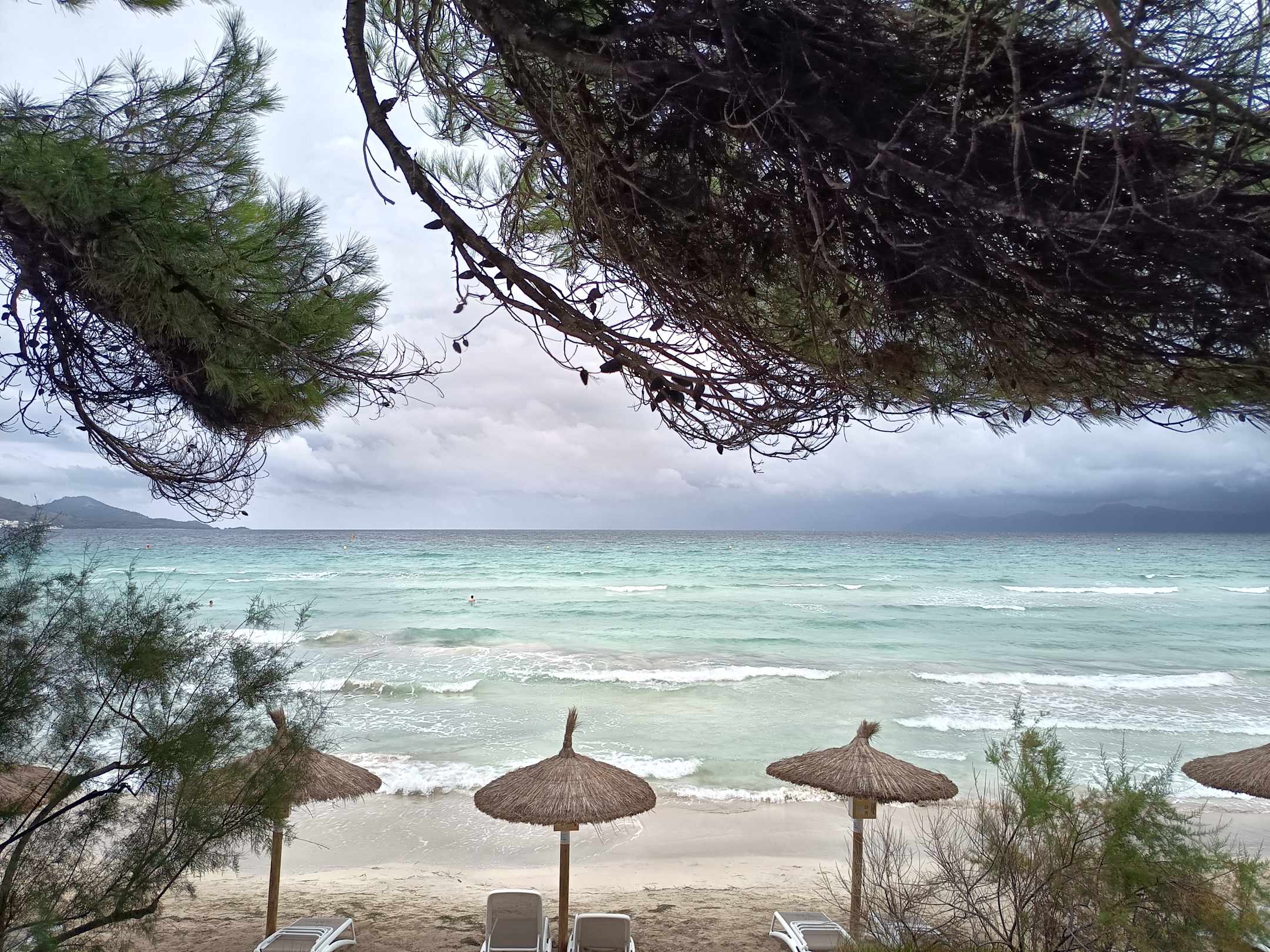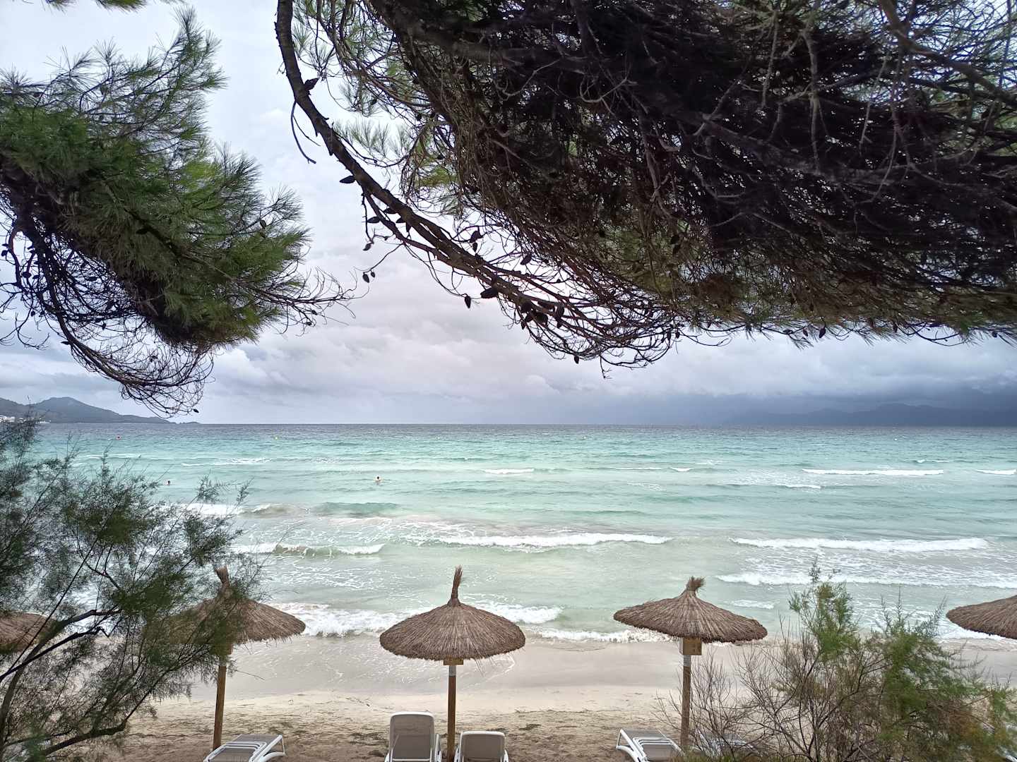 Regnerischer Blick auf den Strand.