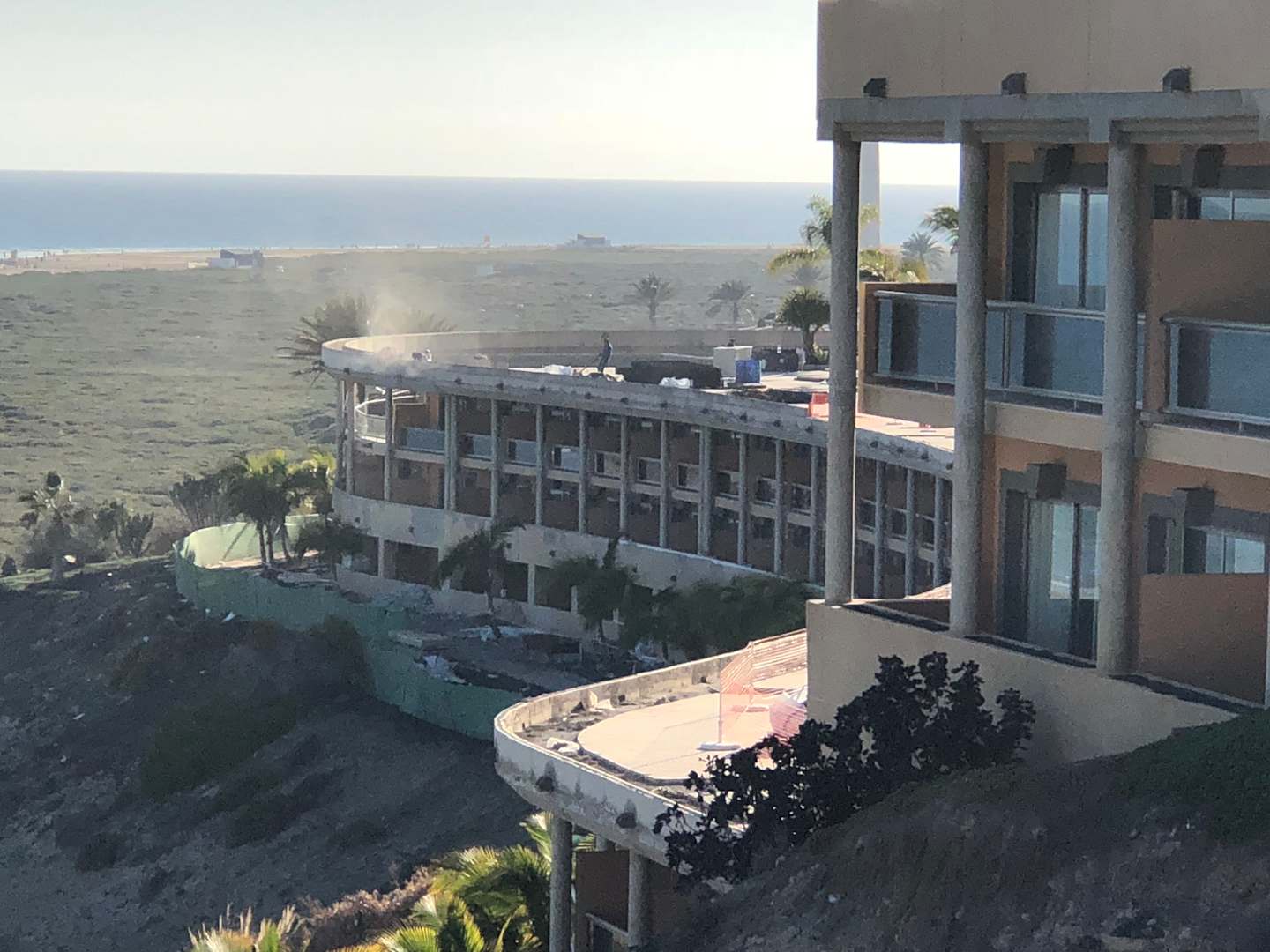 Außenansicht vom Pool mit Staub und Lärm