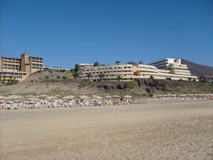 Ansicht auf das Hotel vom Strand.