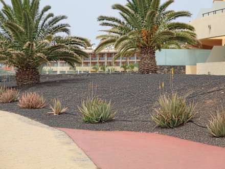 Gartenanlage zwischen Strand und Hotel
