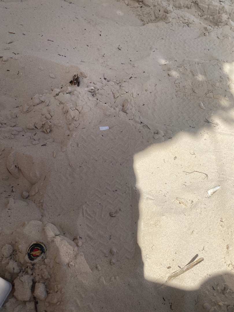 Müll am Strand zwischen den Liegen