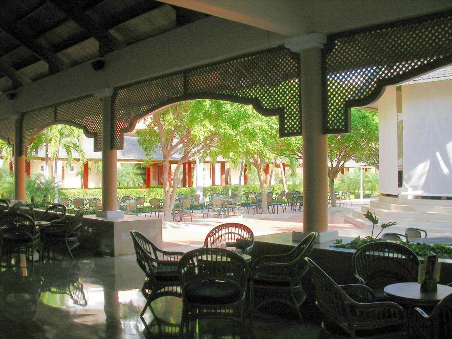Rechts ist der Pavillon zu sehen, in dem abends die Musik gespielt wurde. Man kann drinnen und draußen sitzen. Hier wurde auch getanzt.