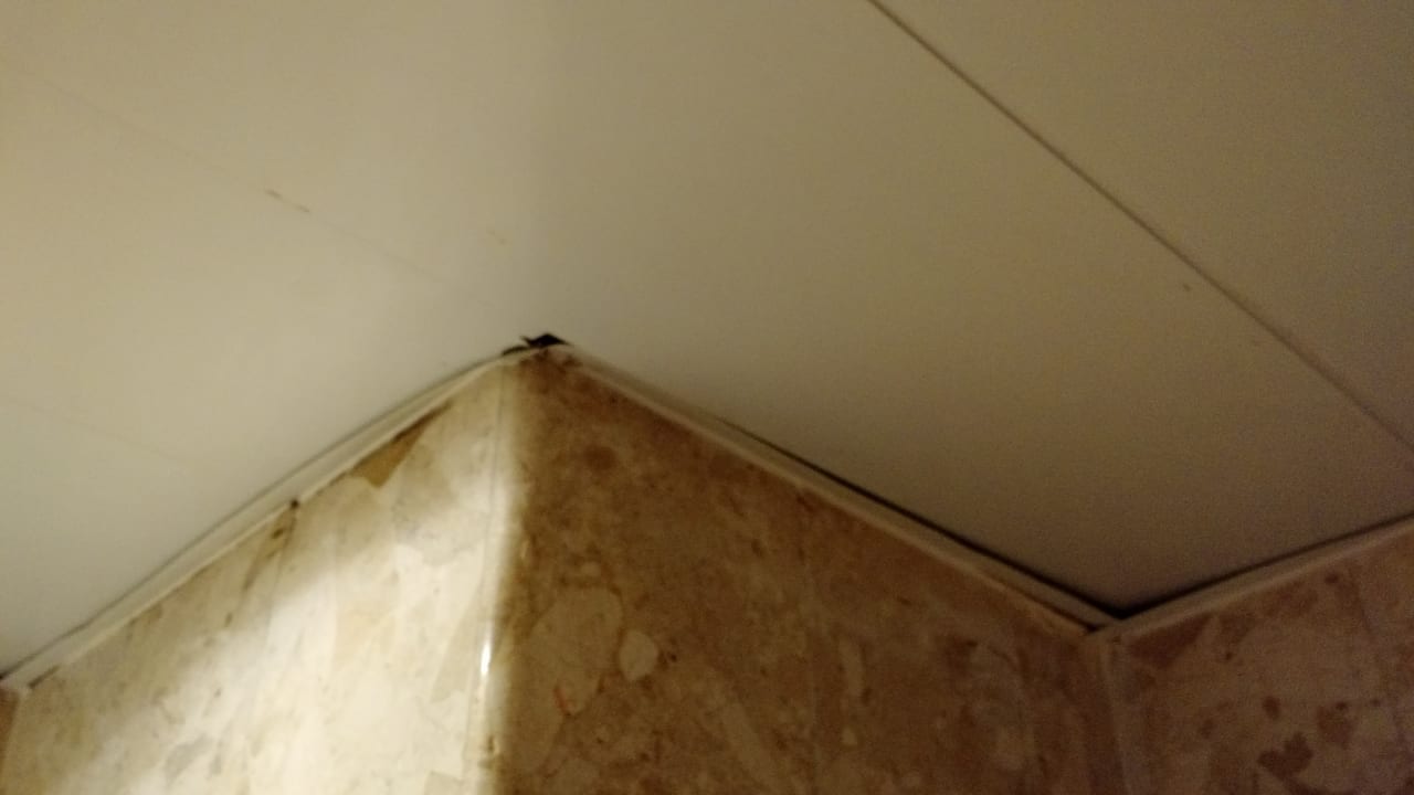 Decke im Bad, sie hing schon durch und war überall defekt