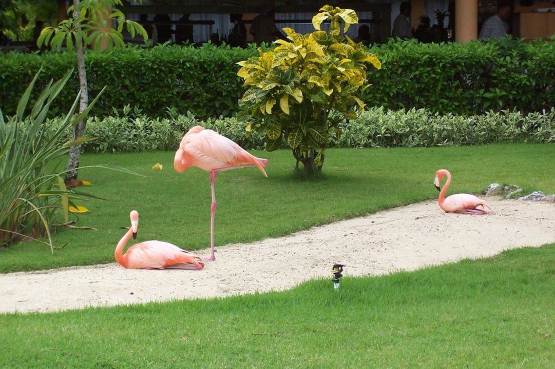 Gartenanlage mit Flamingos
