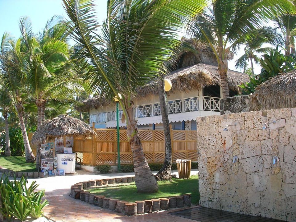 Hier konnte man sich die Füße waschen und abduschen. Der Blick geht aufs Fitnesscenter, und da geht es rechts in die karibische Straße rein.